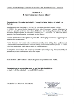 Dodatek k Vnitřnímu řádu č. 2